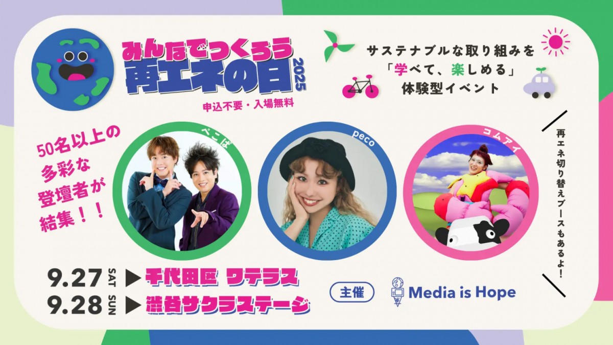 9æ24æ¥ã¯ãã¿ããªã§ã€ãããåãšãã®æ¥ããé颚ãå¹ãé£ã°ããæ°åå€å解決ã«åãããç¥ãã€ãã³ããä»é±9/27(å), 28(æ¥)ã«éå¬ïŒïŒ - æ°åå€å解決ã®ããã«åçå¯èœãšãã«ã®ãŒã®æ®åããµã¹ããããªãã£ã«å°œåããã¹ããŒãçããã¡ãã·ã§ã³çãã¡ãã£ã¢é¢ä¿è ãã¢ãŒãã£ã¹ããè¥è ãå®è·µè ãªã©ã50å以äžã®å€åœ©ãªç»å£è ãçµéïŒïŒ[9/24 äžè¬ç€Ÿå£æ³äººMedia is Hope]