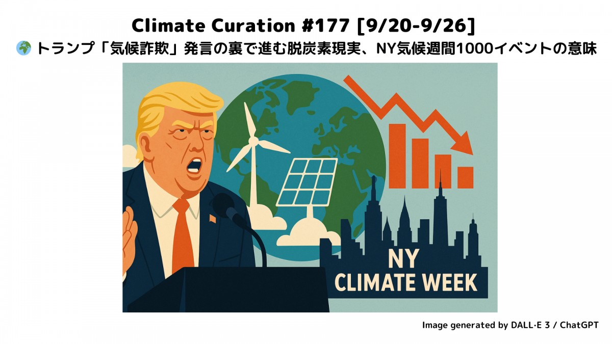 New York Climate Week 2025ã¯ããã©ã³ãæ¿æš©ã®æ°ååŠå®æ¿çã«ããããããèšé²çèŠæš¡ãšãªãã1000以äžã®ã€ãã³ãïŒæšå¹Žã¯900ïŒãéå¬ãããŸãããããªåå®ç«æ¡è ãã£ã²ã¬ã¹æ°ã¯ãçŸæ¿æš©ãžã®è§£æ¯å€ãšããŠãåå ãå¢å ããŠãããšåæãççŽ ååäŒæ¥Climeworksã¯æšå¹Žã®4åã®ã€ãã³ãã«åå ããéèŠæ¡å€§ã宿ããŠããŸããäžæ¹ãç±³åœã»EUãæ¶æ¥µçãªäžãäžåœãCOP30è°é·åœãã©ãžã«ãäž»å°æš©ãæ¡ã£ãŠããŸããäžç倧æäŒæ¥ã®åæ°ãããããŒããçŽæãããã98%ãå ·äœçãªæ¯åºèšç»ãæªå ¬è¡šãããã¯ãã§ã©ãŒè²¡å£èª¿æ»ã§ã¯äžç人å£ã®86%ãæ°å察çã«ãããåœéååã®éèŠæ§ãèªèããŠããããšã倿ããŸããã