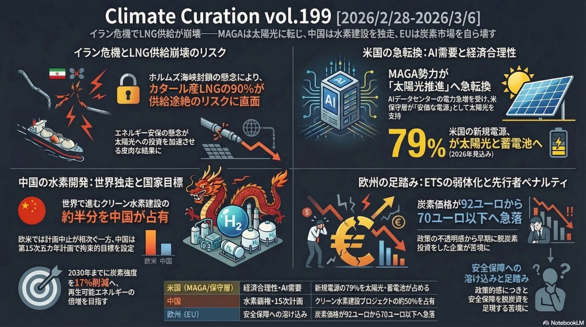 Vol.199 イラン危機でLNG供給が崩壊――MAGAは太陽光に転じ、中国は水素建設を独走、EUは炭素市場を自ら壊す