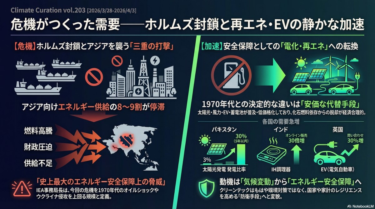 Vo:203: 危機がつくった需要——ホルムズ封鎖と再エネ・EVの静かな加速